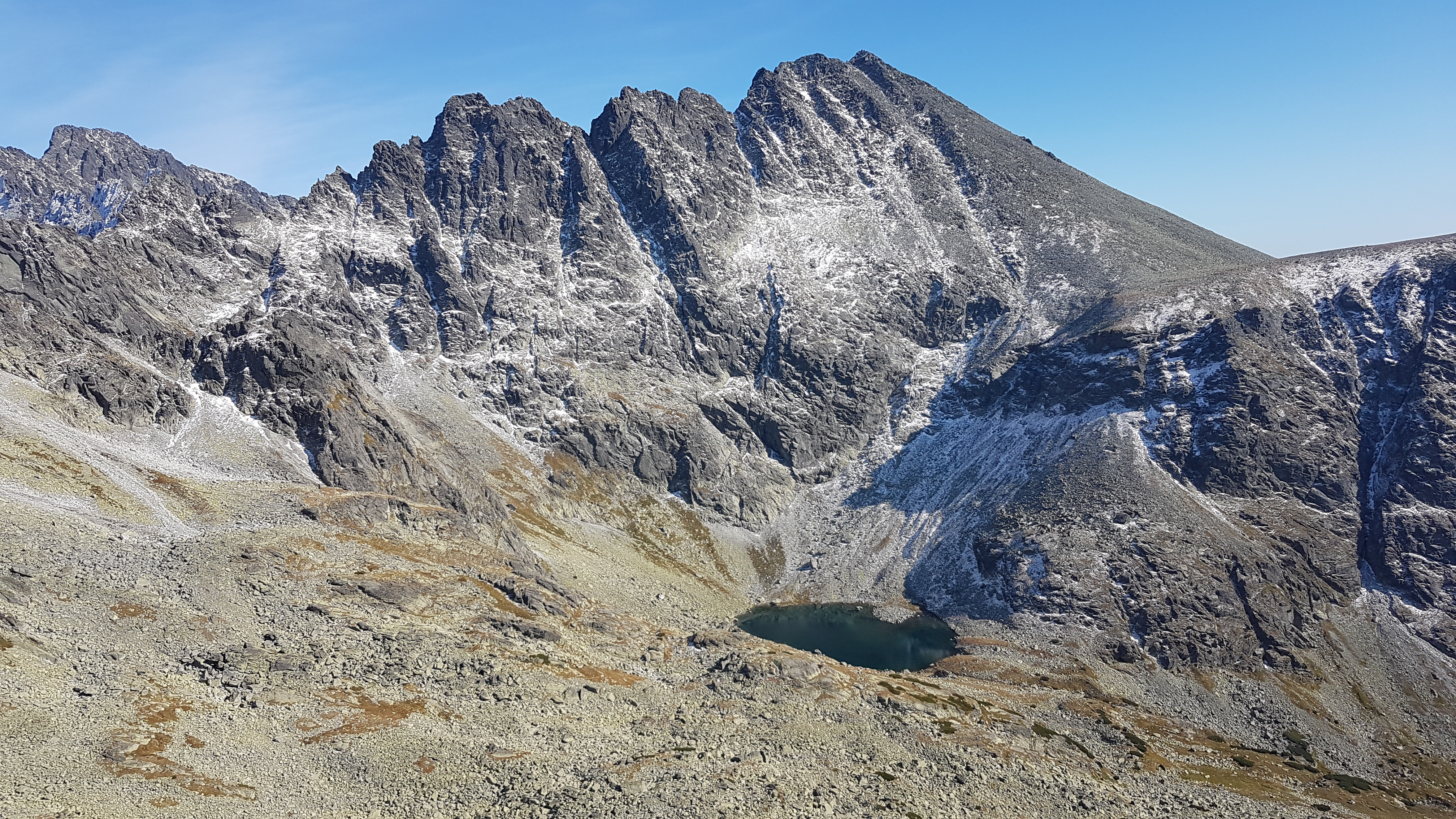 Je pátek 20.9., který potvrzuje včerejší předpověď počasí na slunečnou sobotu. Dva dny před tím, ve středu a čtvrtek od 1500mnm sněžilo a teplota přes den se má pohybovat lehce nad nulou. V úvahu tedy připadají nějaké kratší jižní stěny, napadá mě Volia veža nebo Ošarpance. Beznadějně zkouším sehnat ubytování na Chatě pod Rysmi a na Popradském plese, kde mě provozní po telefonu posílá do ….. (turistov je vela, poval? – nie, terasa? – nie, povedal som ze nie).