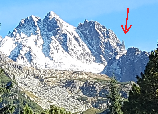 Večer hážu zaprášené dvojčata do báglu + nějaké jistítka a svačinu. Posunujeme budíček o hodinu na 4:50 má být kosa, tak není kam spěchat … Hurá, je skoro ráno, sedáme do auta a se dvěmi prázdnými místy letíme směr Tatranská Štrba. Na parkoviště pod Popradským dorážíme v 8 jako jedni z posledních. Pohorky, bágly na záda a tradá pod stěnu Ošarpanců. Cestou k Popradskému plesu předbíháme autobus polských turistů a konečně v dáli vidíme náš cíl. Je to ta malá špičatá věžička uprostřed fotky se šipkou. Doleva je potom Dračí šít a dvojvrchol Vysoká.